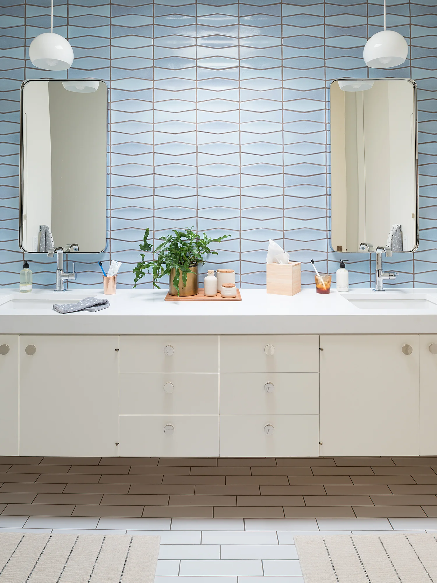 Keeping true to the original style, we added some new Heath tile, as well as augmenting with Ann Sacks to elevate the spaces with fun textures, patterns and colors.